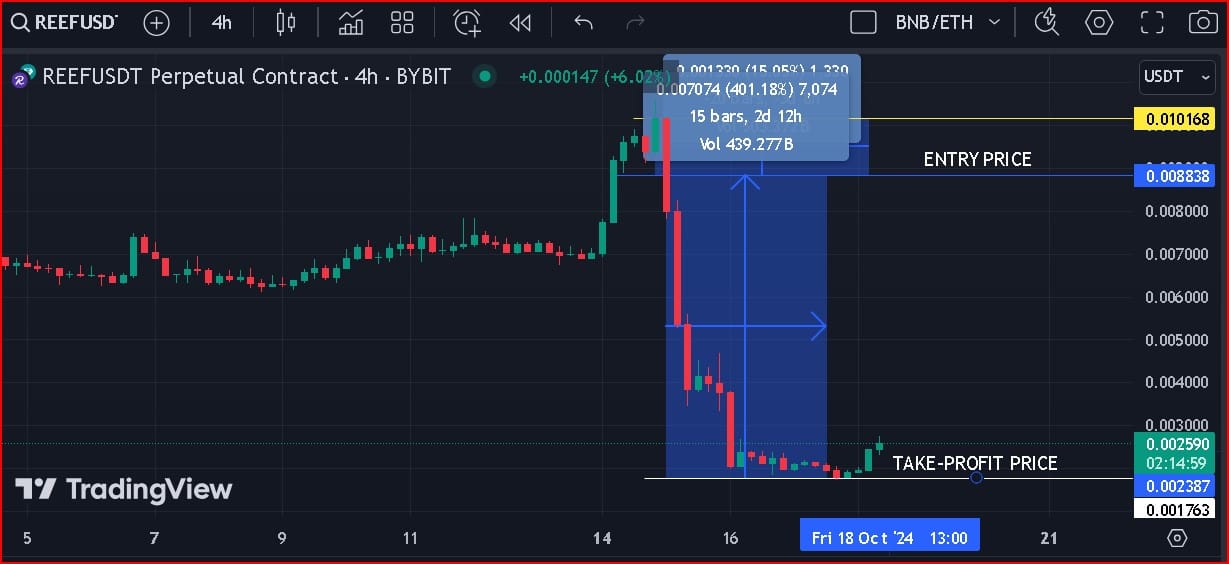 And my students Short traded and made a 400% profit on the REEF-USDT Cryptocurrency Futures contract in 2 days 12 hours.
