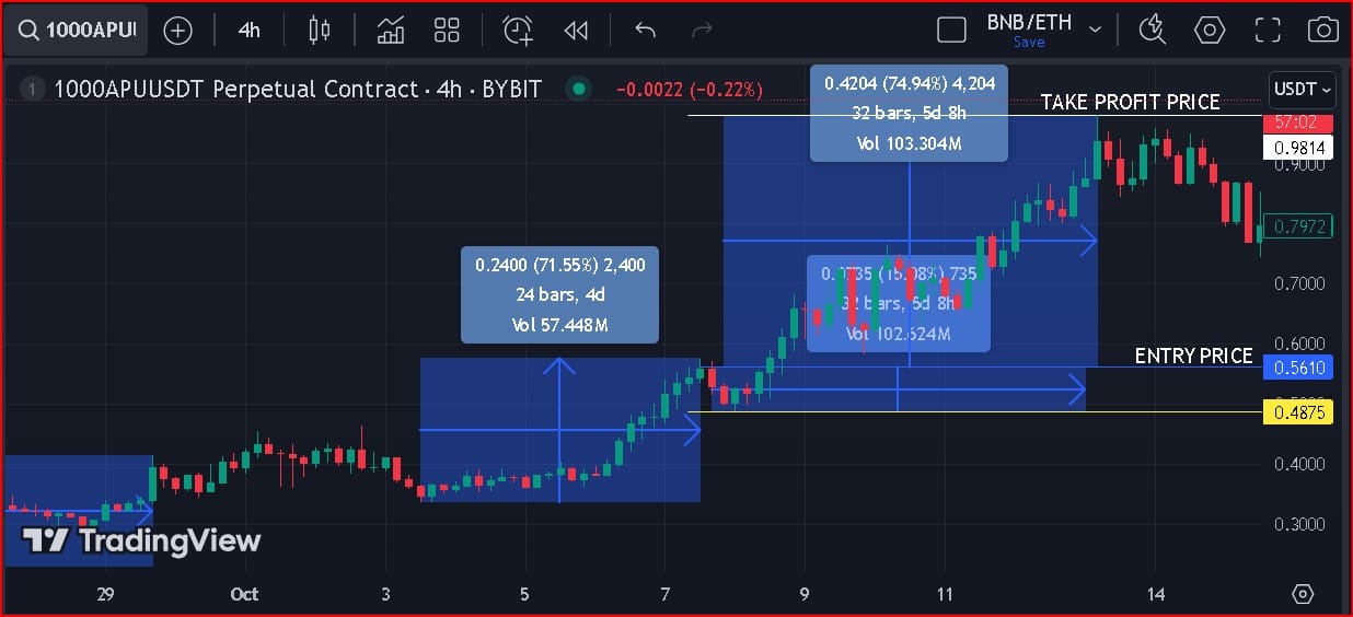 And the best part! I traded and made a 74.94% profit on the 1000APU-USDT Cryptocurrency Futures contract in 5 days 8 hours.