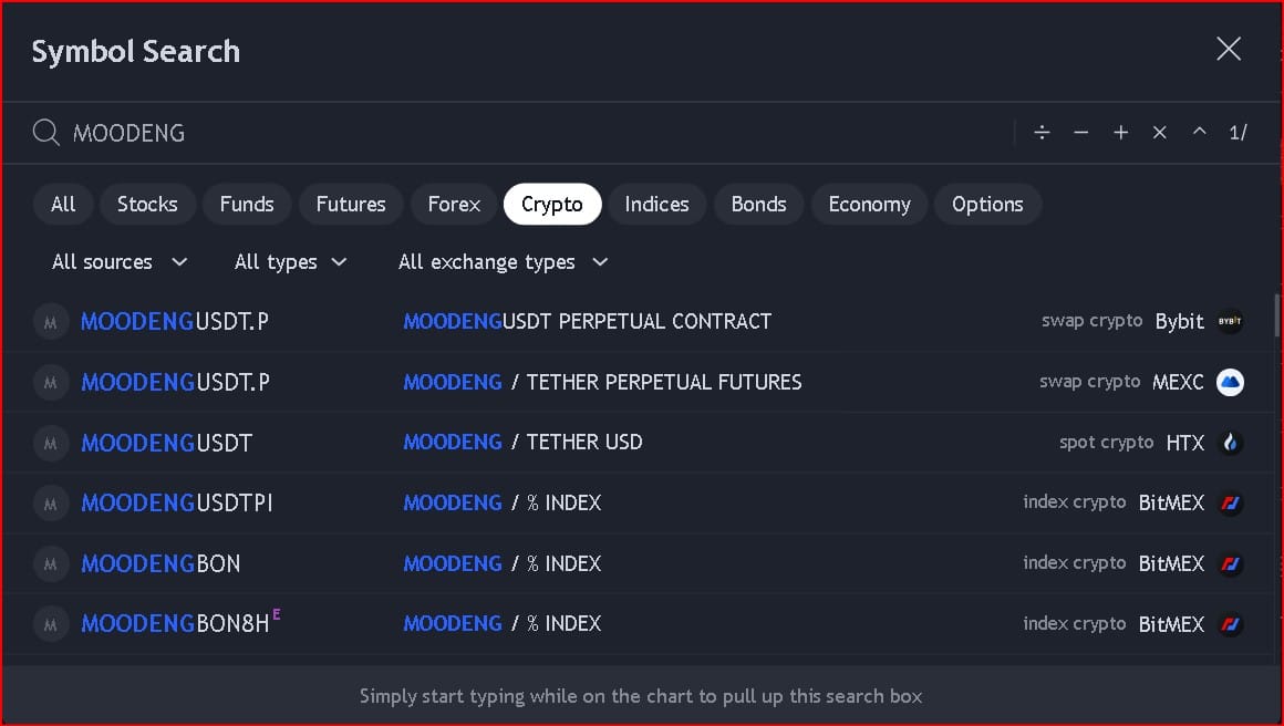 And to properly analyse the candlesticks price chart data of this Cryptocurrency, head over to the Tradingview dot com chart page, search for the Crypto ticker symbol MOODENG.