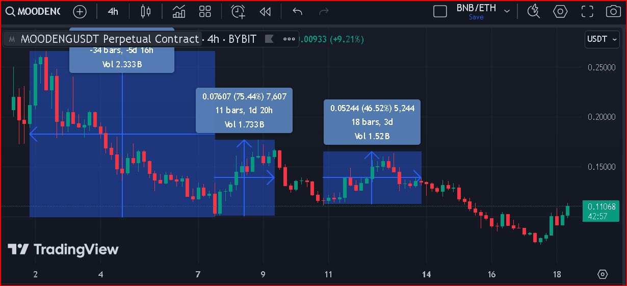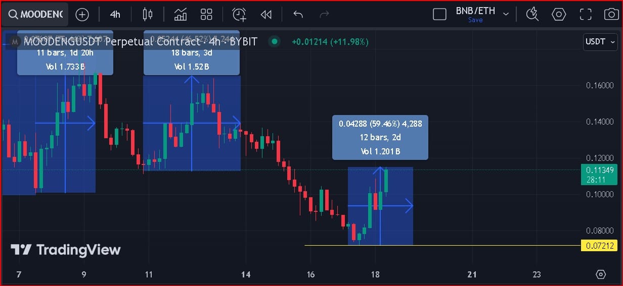 And let’s jump right in to identify the most current Bullish Trend Section of the MOODENG-USDTCryptocurrency Futures contract.
