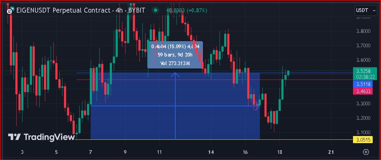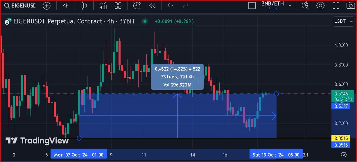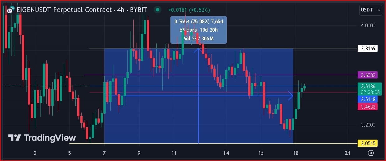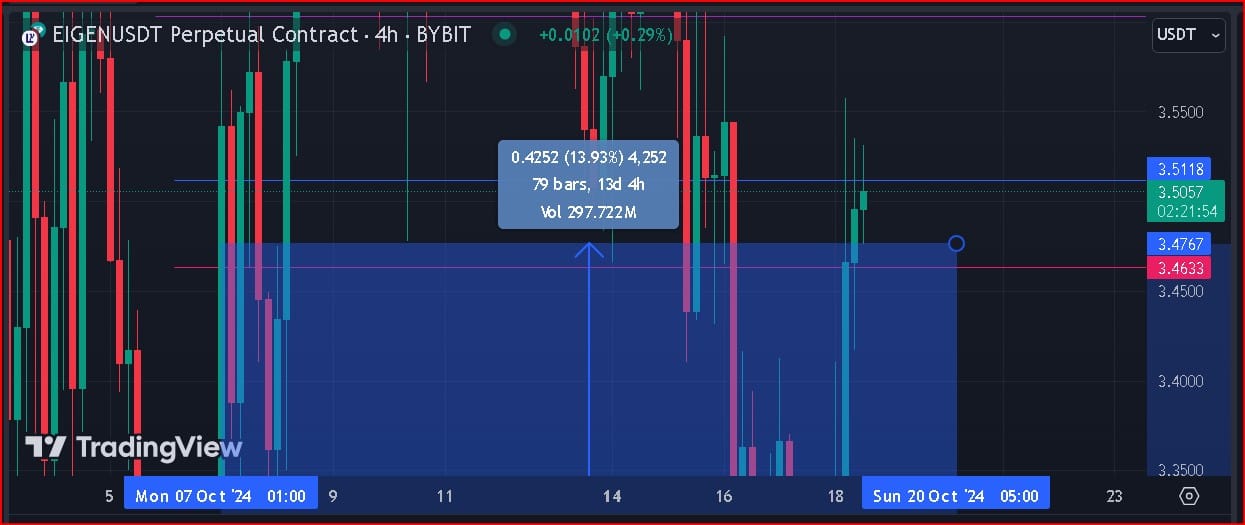 And to properly analyse the candlesticks price chart data of this Cryptocurrency, head over to the Tradingview dot com chart page, search for the Crypto ticker symbol EIGEN!