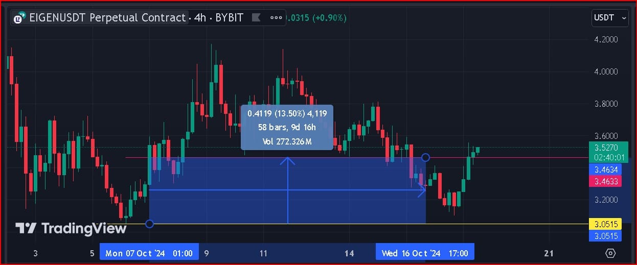 And let’s jump right in to identify the most current Bullish Trend Section of the EIGEN-USDT Cryptocurrency Futures contract.