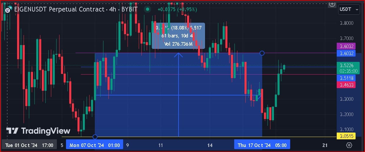 So as you can see on the candlesticks price chart data, the most current Bullish Trend Section of the EIGEN-USDT Cryptocurrency Futures contract started from the lowest price of the Green candlestick Bullish Trend Starter.