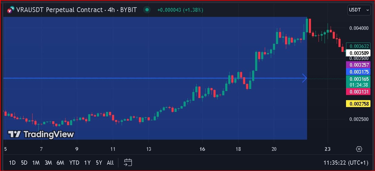 And finally, click on the Trend Line Tools again and select the Horizontal Ray Tool, drag the line to the exact Take-Profit Price of the Crypto trading signal and then change the colour to White.