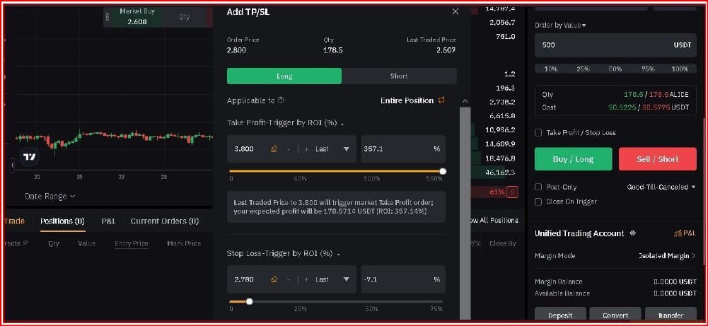 Next, on the Order Value bar, enter the amount of USDT capital you intend to use for the trade.