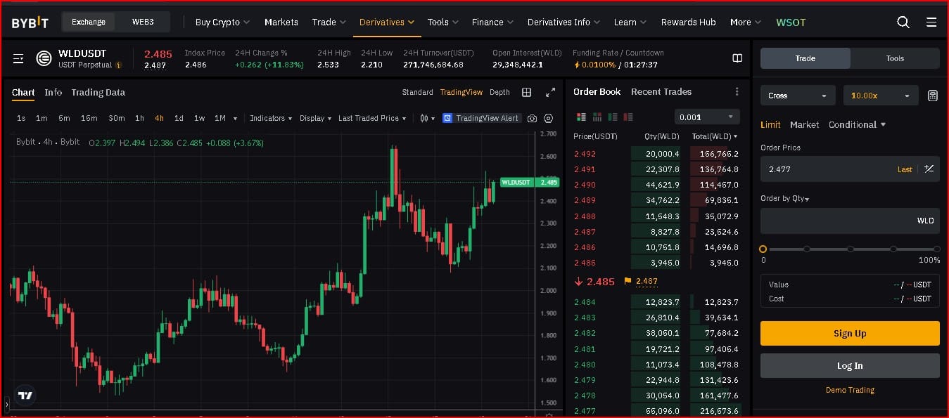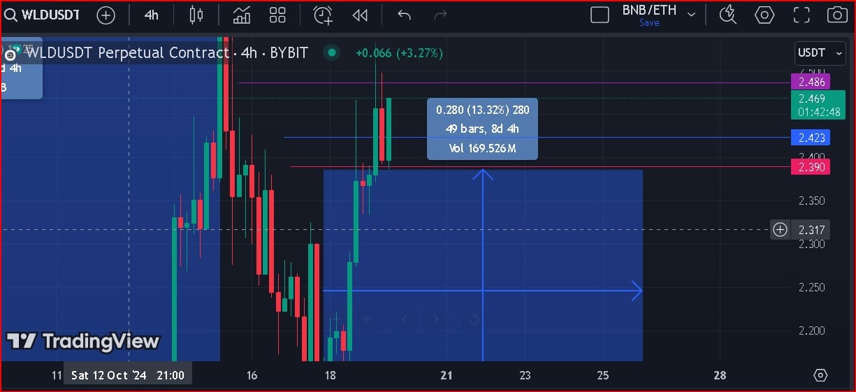 And after running a bunch of research on the BYBIT Derivatives platform, I found the WLD-USDT Cryptocurrency Futures contract as your potential target for now.